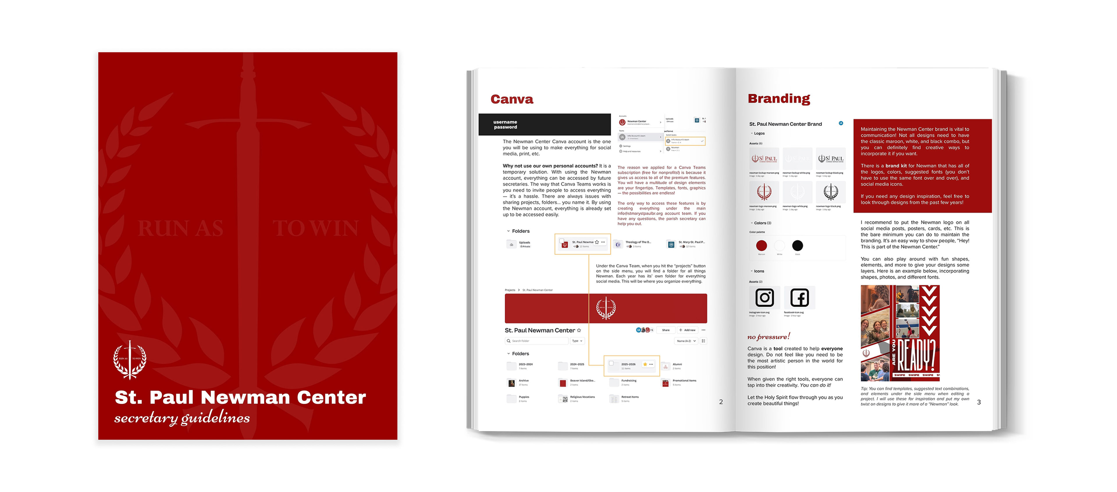 Organizing the existing Newman Center brand into a system helps maintain future communication with students.