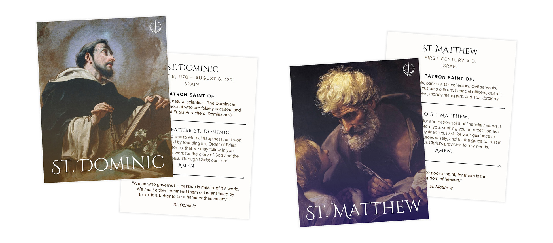 When I joined the Newman Center, we were provided poorly designed saint cards with no information. I decided to update this collection, expanding it to 70 total cards complete with historical information, a prayer, and quote to help students connect with their retreat saint (since they don't have phones until after the retreat ends).